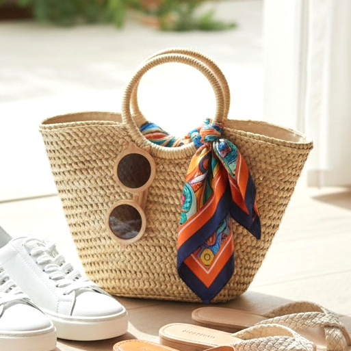 A természetes árnyalatú - bézs, teve, barna - lapos szandálok klasszikus kombinációja egy nyári napnak. Fehér vászonnadrág, őzbarna szandál és egy okosan megválogatott fonott kézitáska a nyári öltözék esszenciája.