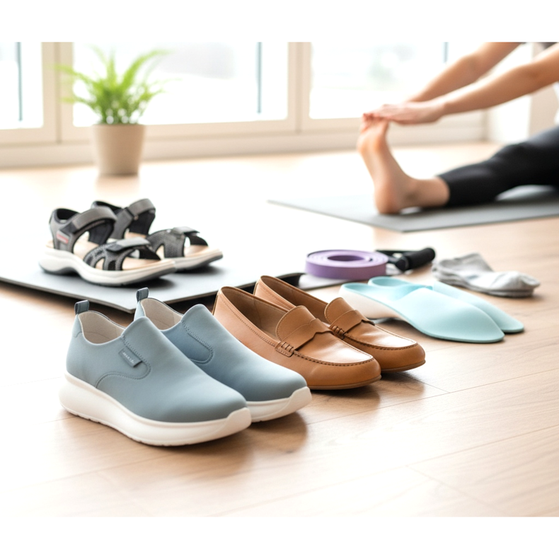Lapos lábú cipő kiválasztásakor ügyeljen a következő jellemzőkre: 1) Boltív támasztéka – A cipőnek határozott ívvel kell rendelkeznie, amely támogatja a láb természetes ívét. 2) Merev sarok – megakadályozza, hogy a lábfej kifelé billenjen, ami súlyosbíthatja a fájdalmat. 3) Csillapítás – elnyeli az ütéseket és csökkenti a lábra nehezedő nyomást. 4) Széles alap – egyenletesen oszlatja el a súlyt. 5) Légáteresztő anyag - megakadályozza a túlzott izzadást és a kellemetlen szagokat. Ezenkívül kerülje a túl rugalmas vagy puha cipőket – előfordulhat, hogy nem nyújtja a szükséges támaszt.