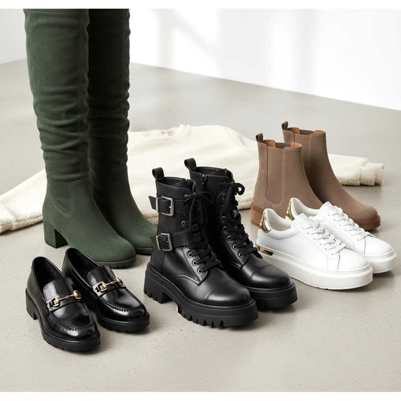 A magasabb szabású bokacsizma tökéletesen passzol a túlméretezett pulóverhez. A térd feletti vagy térd feletti csizma remek egyensúlyt teremt a pulóver laza szabása között. Ha alacsonyabb cipőt választ, válasszon markánsabb talppal vagy platformmal rendelkező modelleket, amelyek optikailag kiegészítik az egész sziluettet.