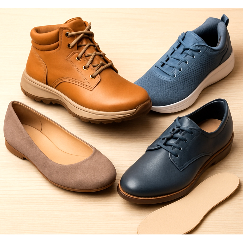 A láb magas ívű - jó ívtámaszú és magasabb szárú cipőre van szüksége. Kerülje a lapos betéteket. Ortopédiai márkák keresése (Vionic, Ecco).