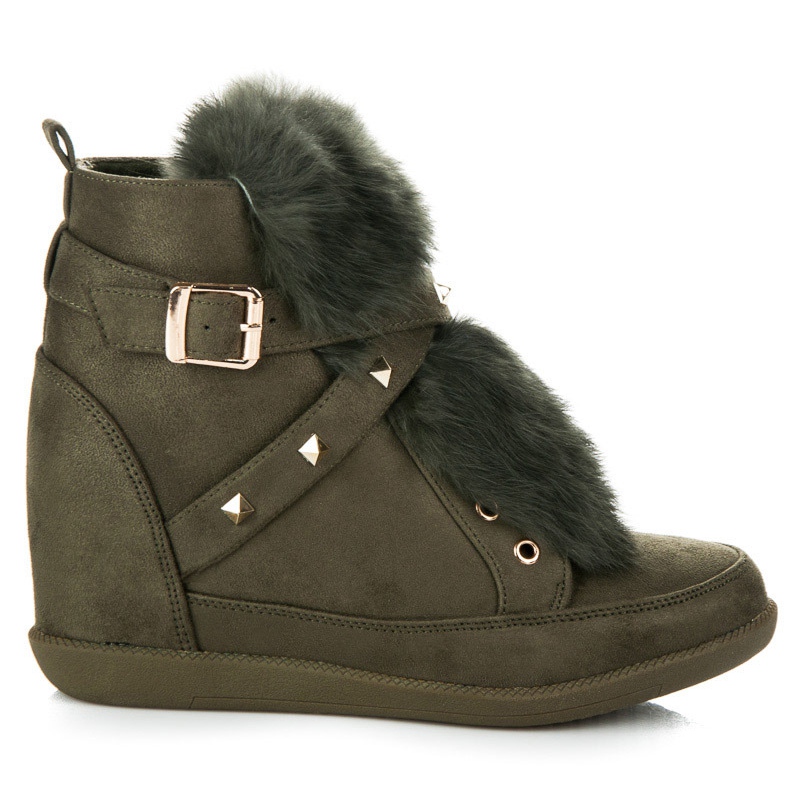 Ezek a tornacipők nem csak intenzív zöld árnyalatukkal gyönyörködtetnek, hanem dekoratív szőrmével is, ami rendkívüli karaktert ad nekik. Ennek a kombinációnak köszönhetően egyedi stílust hoz létre, amely biztosan felkelti a figyelmet. Magasságuk ellenére a tornacipők kivételes viselési kényelmet garantálnak, így ideális választás a mindennapi használatra.
