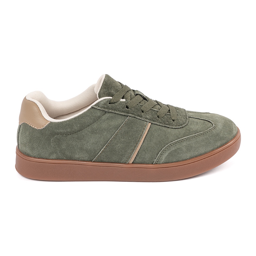 A magas színvonalú velúr ökológiai bőrből készült cipők intenzív zöld színt mutatnak, amely tökéletesen illeszkedik a jelenlegi divat trendekhez. A puha, beépített sarok további támogatást nyújt a lábak számára, és a 2,5 cm -es magas platform finom növekedést eredményez anélkül, hogy feladná a kényelmet. A kerek orr garantálja a tágasságot, ami a használat kényelmét eredményezi.
