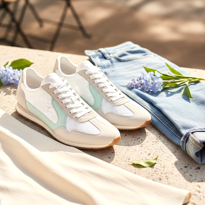 Ez a trend tökéletesen illeszkedik a szezon általános filozófiájába: kevesebb sikoltozás, több osztály. A vékony tornacipők remekül mutatnak egyenes szárú nadrággal, felhajtott farmerrel és elegáns midi ruhákkal. A sportos lazaság és a nőies kifinomultság kombinációja 2026 tavaszának egyik legerősebb stílusjegye. Válasszon fehér, krém vagy pasztell menta vagy levendula árnyalatú modelleket, hogy teljes mértékben kihasználhassa ennek a trendnek a szellemiségét.