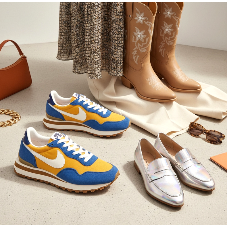 A 2026-os év az 1970-es és 1990-es évek esztétikájának nagyszerű visszatérése a lábbelik terén. A tervezők archív mintákat használtak, és új életet leheltek beléjük. Ennek a trendnek az egyik legnépszerűbb megnyilvánulása a retró futócipők - a hetvenes évek klasszikus futómodelljei által ihletett cipők, melyeket karcsú sziluett, jellegzetes talpprofil és merész színkombinációk jellemeznek.