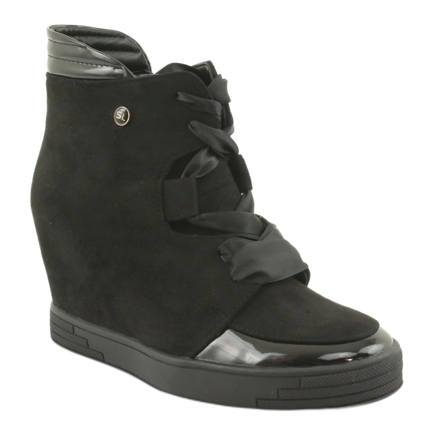 Az SN107 modell fűzős zárással és funkcionális cipzárral van ellátva, ami megkönnyíti a cipő fel- és levételét. A kerek orr és a rendkívül divatos design kiemeli a nőies karaktert, a finom fekete-arany logó pedig az egészet teszi teljessé.