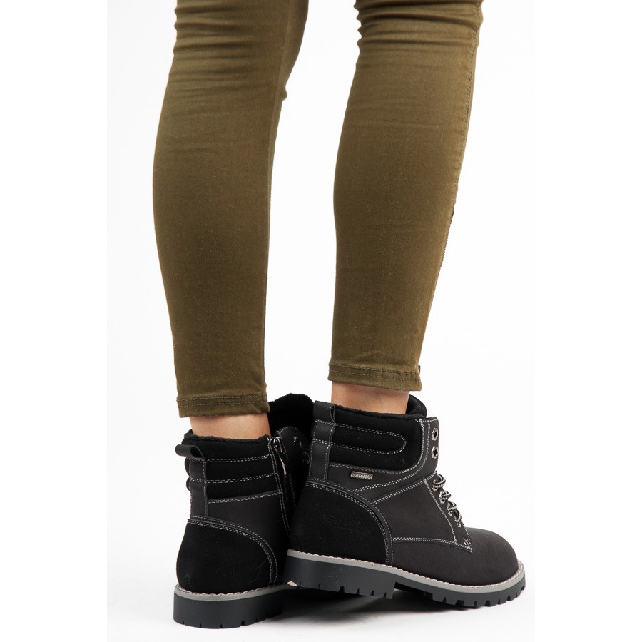 Az ökológiai bőrből készült trapperek szilárdságukkal és tartósságukkal lenyűgöznek, fekete színükkel pedig tökéletesen passzolnak a legkülönfélébb stílusokhoz – a hétköznapoktól az elegánsabbakig. A 3 cm magas lapos sarok kényelmes viseletet biztosít egész nap.