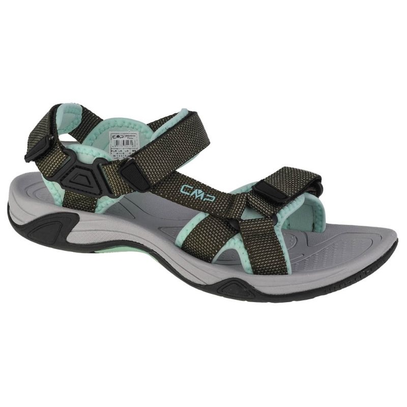 Sandals CMP Hamal WMN túrázás szandál 38q9956-f854-nők, zöld és fekete sportszandálok, kombinálva a mindennapi használat kényelmét a kültéri funkciókkal. A könnyű kialakítás, az állítható tépőzáras csíkok és a habbetétek még hosszabb kopás közben is biztosítják a kényelmet, és a gumi talp garantálja a tapadást és a tartósságot.