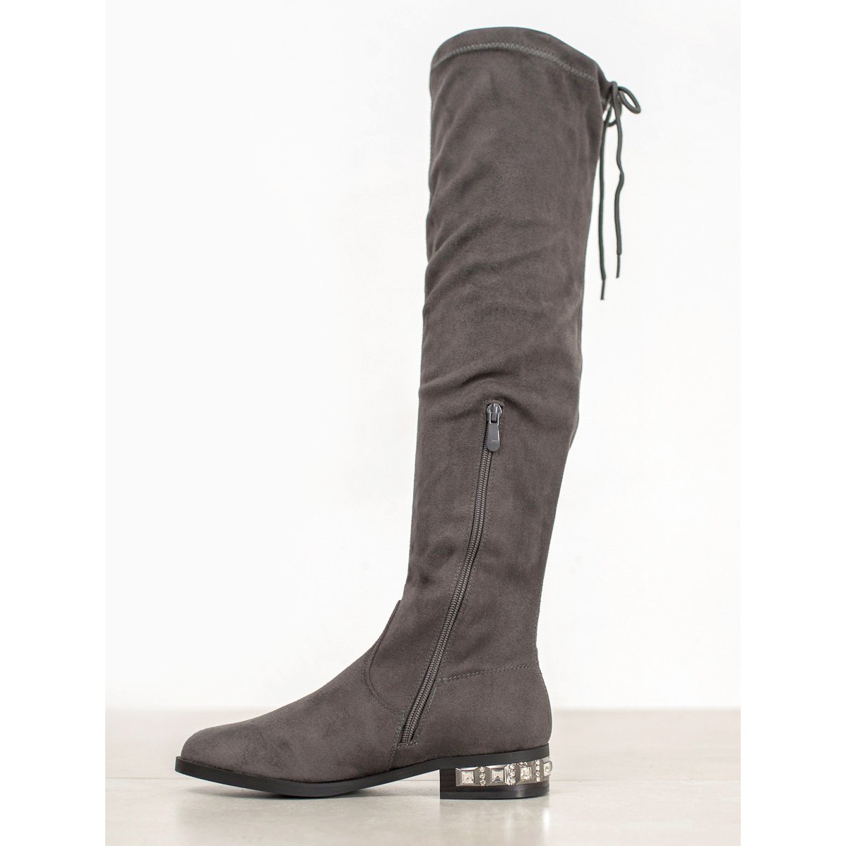Részletek: Bestelle Combig érő csizma dekoratív sarokkal szürke