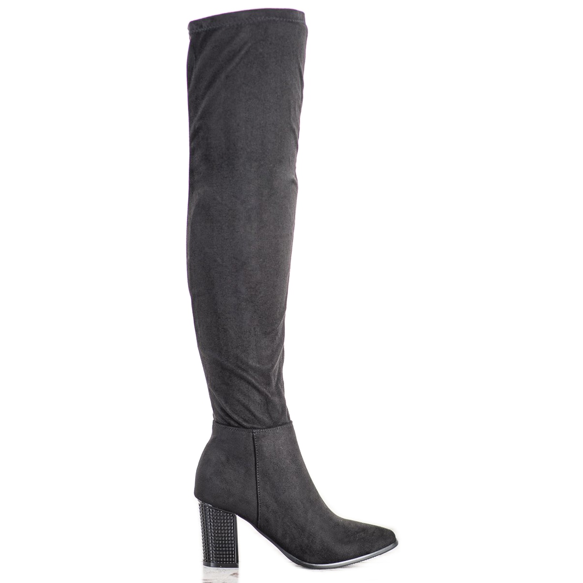 Részletek: Combig érő csizma dekoratív VINCEZA sarokkal fekete