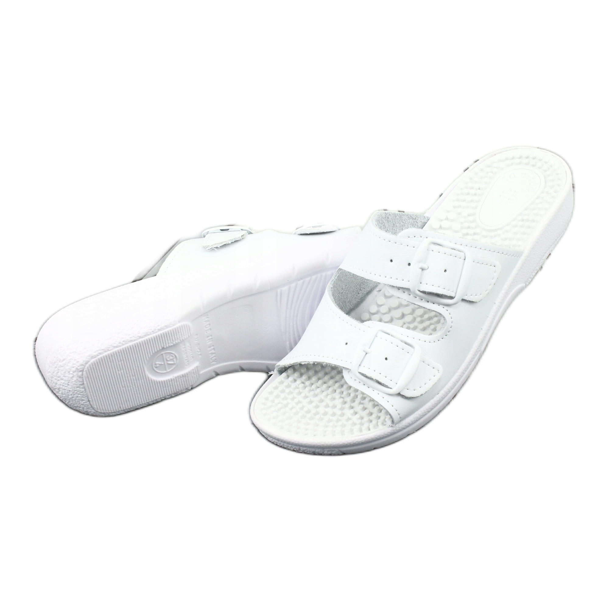 Elegáns és kényelmes kényelmes papucsok A Nadia tökéletes megoldás azoknak a nőknek, akik egész nap kényelmet keresnek. A finom tüskékkel ellátott profilos betét biztosítja a láb enyhe masszázsát, ami elősegíti a megfelelő elrendezést és növeli a kényelmet a gyalogláskor. A beállítással ellátott bőrpántoknak köszönhetően könnyen beállíthatja azokat bármilyen lábszélességre.
