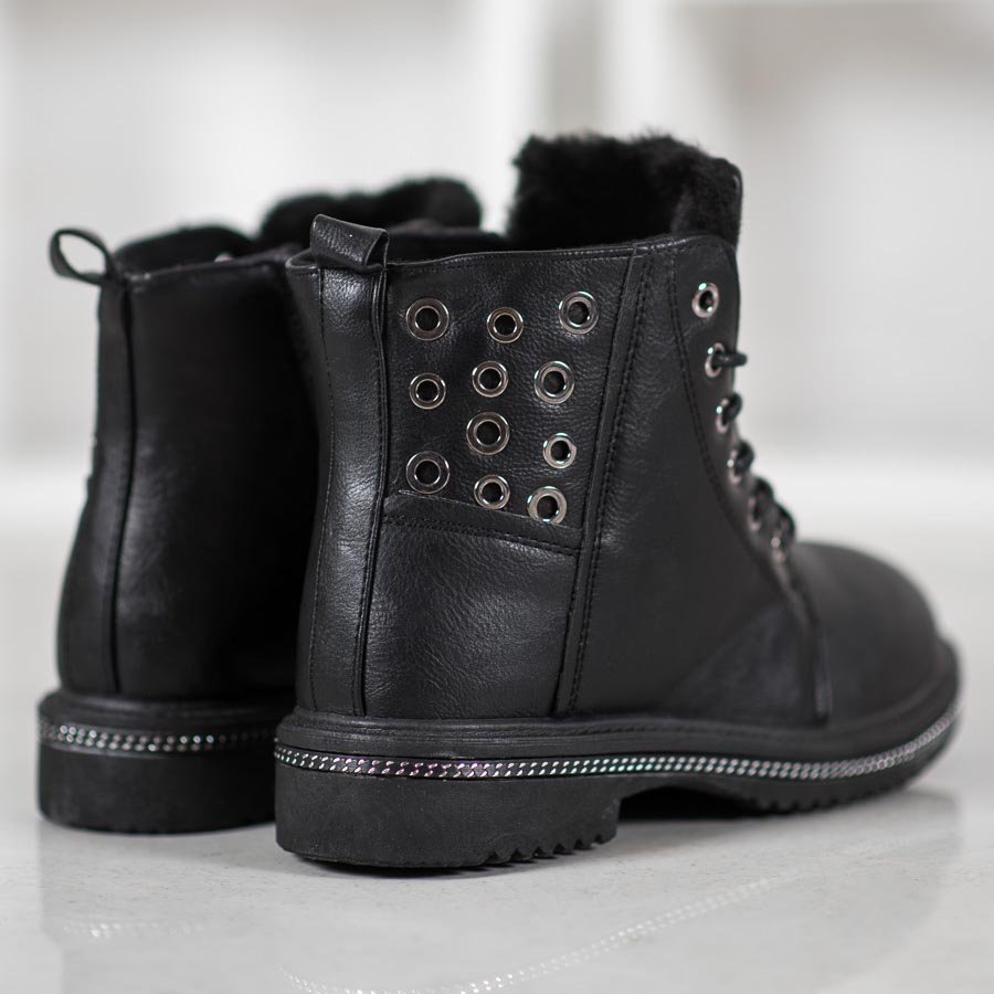 A SHELOVET minden részletre odafigyelt - a formás szabás nem nyomja el az alakot, a szemet gyönyörködtető strasszok pedig karaktert adnak az egész stílusnak. Ezek a bokacsizmák mindennapi használatra és hétköznapi alkalmakra egyaránt tökéletesek. Lapos, 3 cm magas sarkuk stabilitást és kényelmet biztosít, lehetővé téve a szabad mozgást.