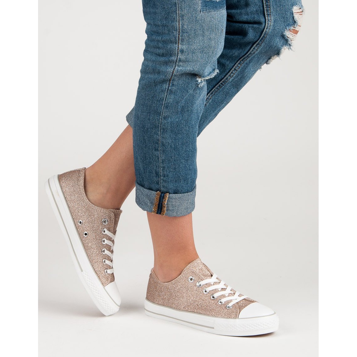 Az arany csillogó tornacipő tökéletes választás azoknak a nőknek, akik a kényelmet az eredeti stílussal szeretnék ötvözni. Ezek az elegáns és hétköznapi cipők tökéletes kiegészítői lesznek a mindennapi stílusnak, iskolába és munkába egyaránt. Kiváló minőségű textilanyagból készültek, biztosítják a viselési kényelmet és a hosszú távú tartósságot.