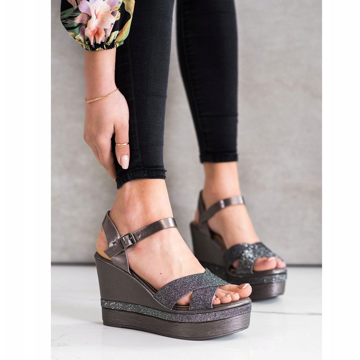 Részletek: Weide Csillogó ék szandál sokszínű szürke
