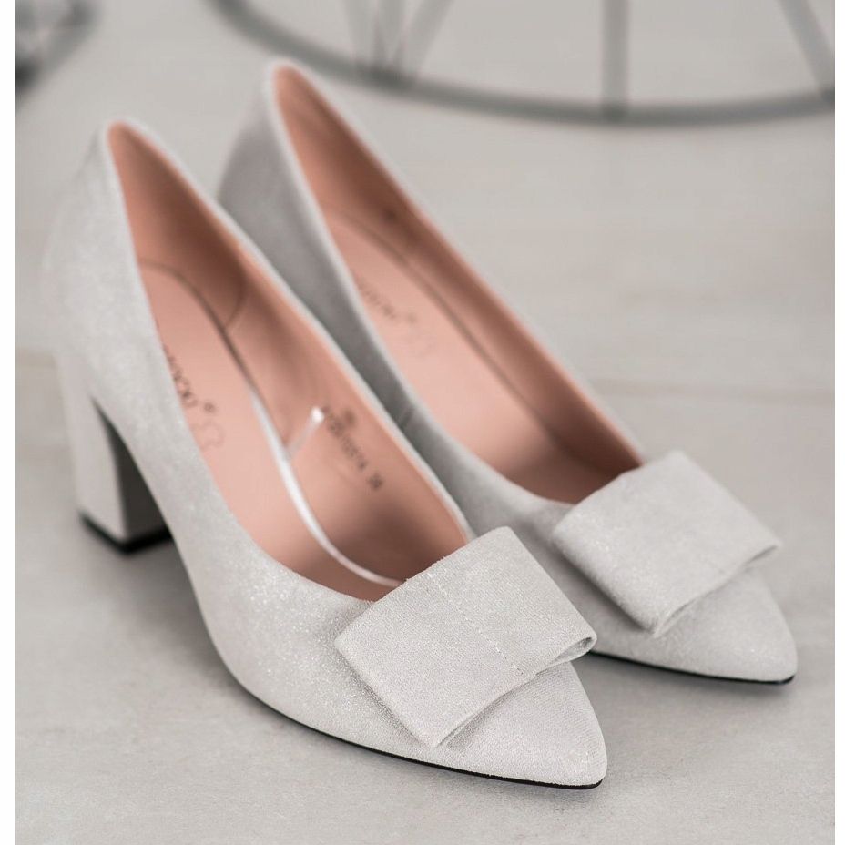 Az elegáns, szürke W. Potocki pumpák tökéletes választás a stílust és kényelmet értékelő nők számára. Klasszikus dizájnjuk és csillogó mintájuk rendkívüli varázst kölcsönöz, így a mindennapi és az esti stílusok tökéletes eleme. A cipő elején található dekoratív masni egyedi karaktert kölcsönöz nekik, a 7,5 centiméteres blokksarok pedig stabilitást és kényelmet biztosít viselés közben.