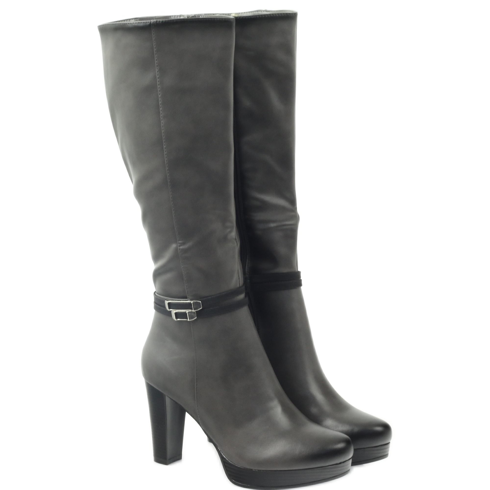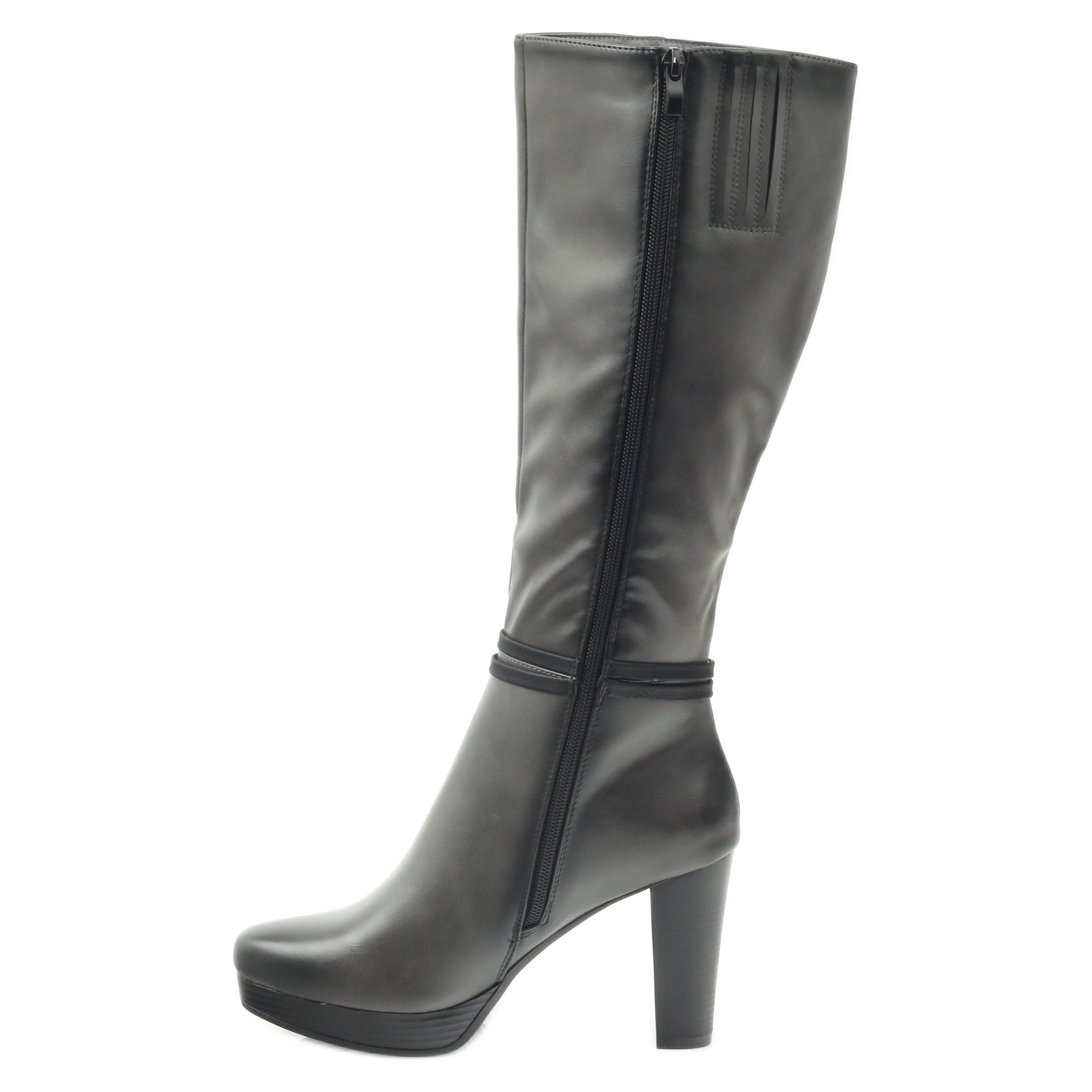 Fedezze fel az eleganciát és a kényelmet a M.Daszyński AM61 magas sarkú, fekete és szürke csizmával. Ez a klasszikus csizma tökéletes választás egy modern nő számára, aki stílusosan szeretne kinézni, és minden helyzetben jól érzi magát.