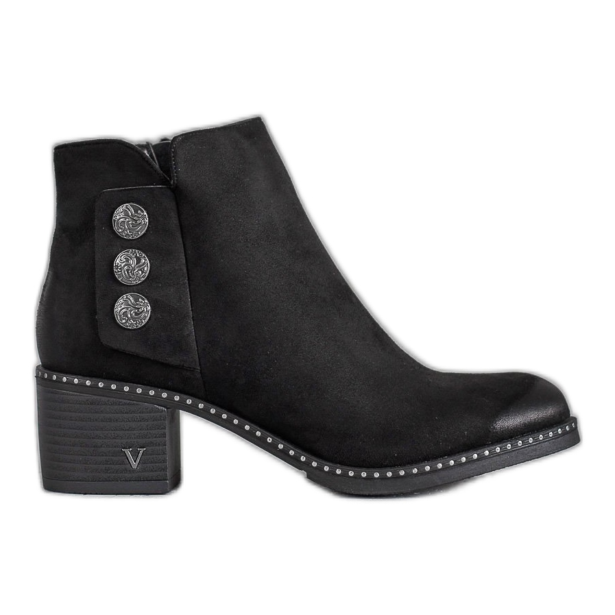 Fedezze fel az eleganciát és a kényelmet a rendkívüli VINCEZA magas sarkú bokacsizmában, klasszikus fekete színben. Ezek a kiváló minőségű női cipők strapabíró, bőrszerű anyagból készültek, ami nem csak a stílusos megjelenést, de a viselési kényelmet is biztosítja.