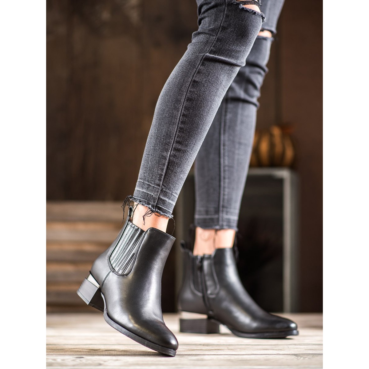 A Super Mode dekoratív sarkú bokacsizma tökéletes választás minden nő számára, aki stílusos és kényelmes cipőt keres a hidegebb napokra. Kiváló minőségű ökológiai bőrből készültek, tökéletesen ötvözik az eleganciát a mindennapi kényelemmel. A fekete felsőrész a bokáig ér, így tökéletes kiegészítője a különféle stílusoknak – az alkalmitól az elegánsabbig.