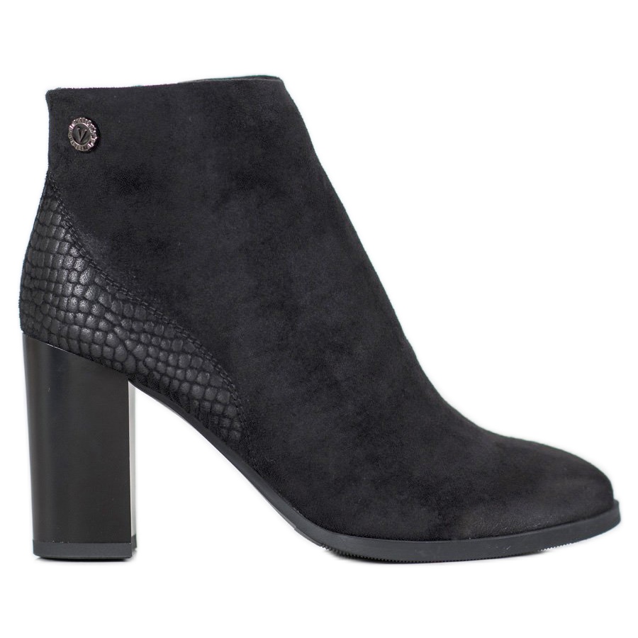 A mindennapi formázáshoz a fekete Goodin bokacsizma 8 centiméteres tömbsarokkal ötvözi az eleganciát a kényelemmel. A kerek orr és a puha, beépített sarok kényelmes viseletet biztosítanak, a szigetelt belső tér pedig tökéletessé teszi a hidegebb napokra. A kiegészítő elemek, például egy kerek tű a tetején, divatos akcentussá teszik a lábbelit.