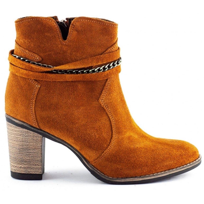 Az elegáns csizma, amely kissé eléri a boka fölött, amelyek ötvözik a nők stílusát és a mindennapi kényelmet. Nubukból készült, kézzel készített, nemes textúra és intenzív, őszi narancs színű. A dekoratív lánc divatfigurát ad nekik, amelynek köszönhetően mind alkalmi, mind kifinomultabb stilizációkért fognak működni.