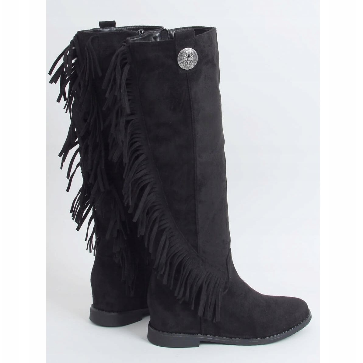 Részletek: Csizma rojtokkal, rejtett ék fekete ST-28P Fekete