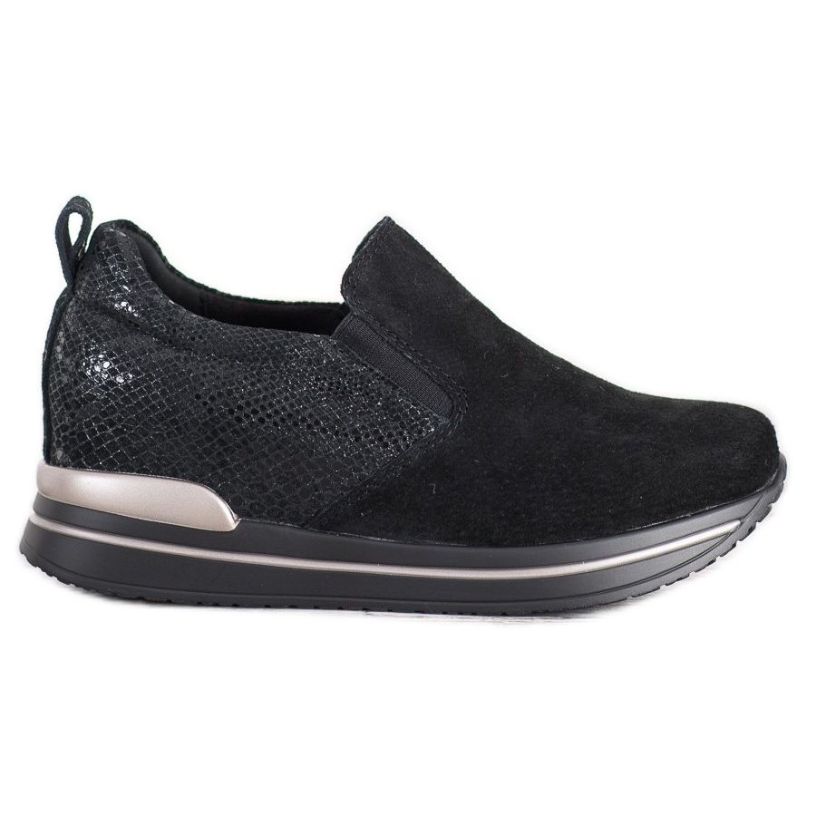 A kerek orrnak és a beépített, merevített saroknak köszönhetően ezek a cipők kényelmes illeszkedést és tartást biztosítanak a lábnak. Egy speciális, 5,5 cm magas rejtett ék lehetővé teszi számunkra, hogy élvezzük a finom növekedést, és ugyanakkor ne adjunk fel a mindennapi kényelemről. Ezenkívül a boka körüli alacsony magasság miatt a cipő rendkívül könnyen felvehető.