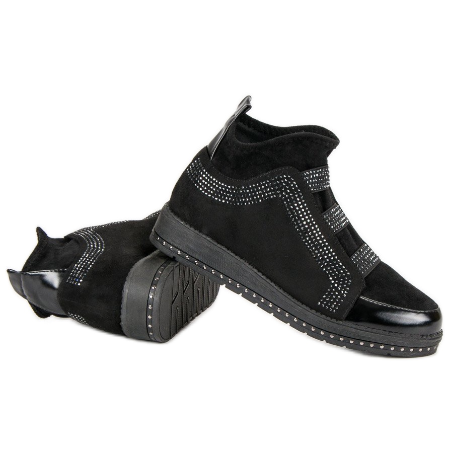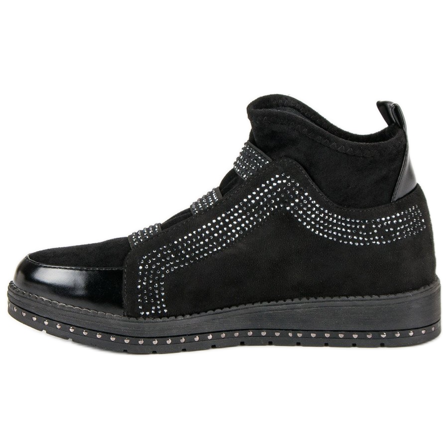 A fekete bebújós tornacipő tökéletes választás minden divatos nő számára, aki egy kis eredetiséget szeretne adni stílusának. Ezek az egyedi, dekorkristályos cipők nemcsak vonzzák a figyelmet, hanem a mindennapi viselethez is kényelmet nyújtanak. Tökéletesek az alkalmi ruhákhoz, a sportos stílust elegáns akcentussal ötvözik.