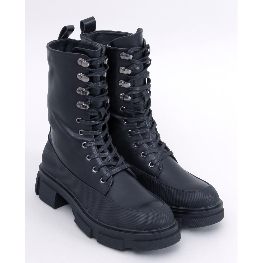 Dart fekete cipőcsizma - fekete, nők, katonai stílusban. Klasszikus csizma univerzális, időtlen megjelenéssel - minden nap tökéletes, városi stilizációkhoz és hűvösebb napokhoz.