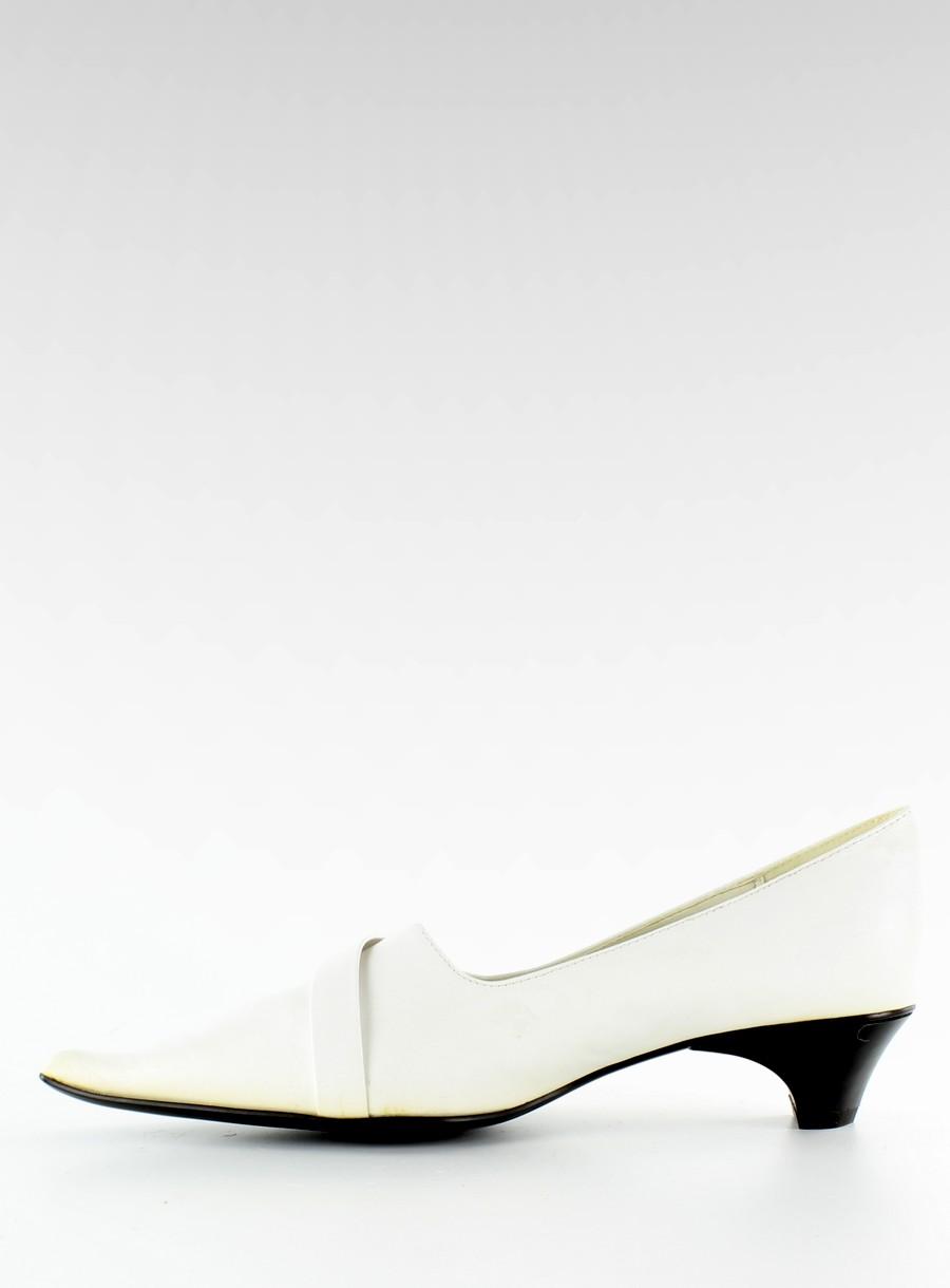 Pumpák díszítéssel 2232-5 Fehér - barna, elegáns női cipők, amelyek ötvözik a finom stílust a mindennapi viselet kényelmével. A barna és bézs árnyalatú áttört felsőrész és az elülső finom díszítés könnyedséget és nőies karaktert, a pont pedig eleganciát ad a sziluettnek. Az alacsony tömbsarok (kevesebb, mint 6 cm) stabilitást és kényelmet biztosít egész nap, tökéletes az irodába és a kevésbé formális alkalmakra.