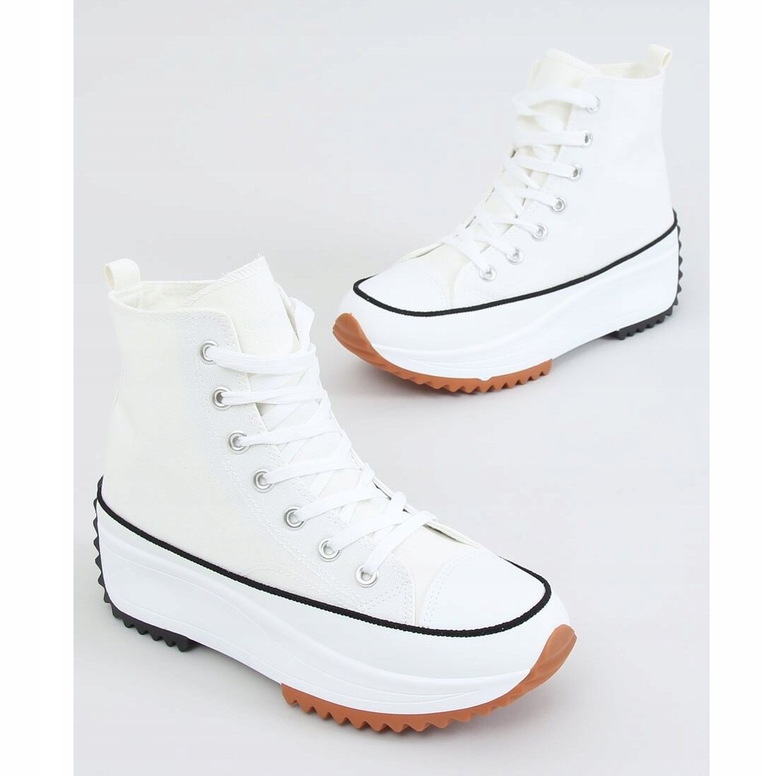 Ezeknek a fűzős tornacipőknek a klasszikus dizájnját a magas, dizájnos, akár 4,5 cm magas talp frissíti. Ez az elem az, ami kiemeli a fehér vásznakat a tömegből, ideális választássá válik azok számára, akik szeretik az extravagáns megoldásokat. A tiszta fehér színű cipők univerzálisak, és gyakorlatilag bármilyen ruhához passzolnak – a farmertől a ruháig.