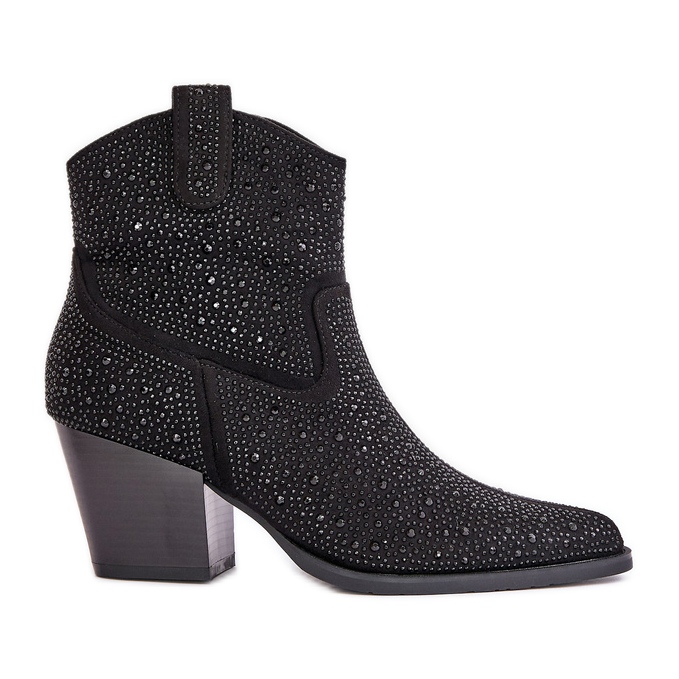 Részletek: Díszített Cowboy csizma magas sarkú, hegyes orrú S.Barski HY42-121 fekete