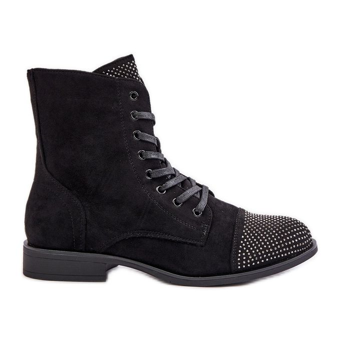 Részletek: Díszített lapos csizma, Eco Suede, meleg, fekete Ellieo