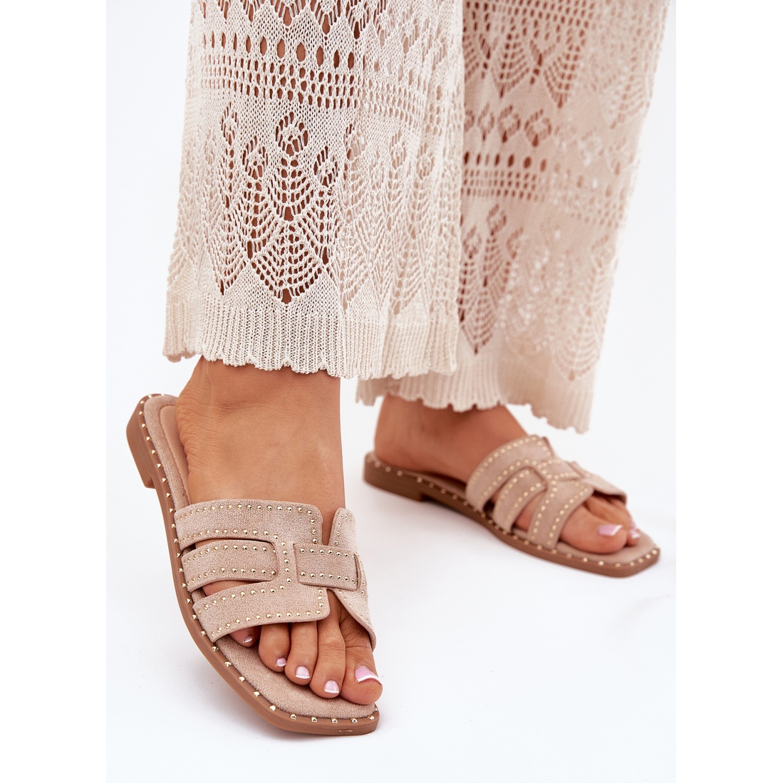 Inna marka Díszített lapos papucs flopok khaki bézs