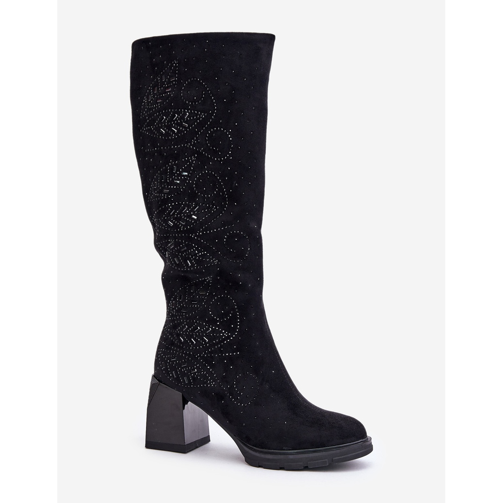 S.Barski S.Barski Díszített, térdig érő, melegített női csizma magas sarkú MR880-158 fekete