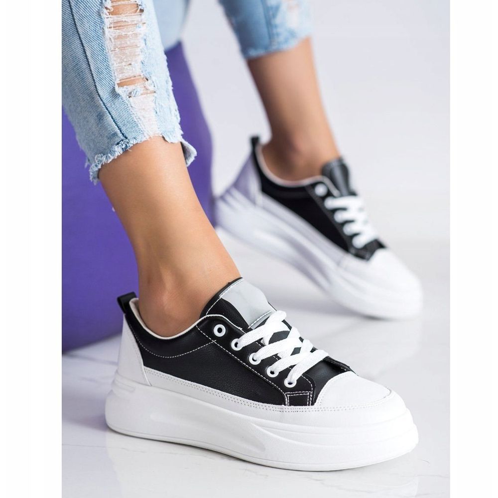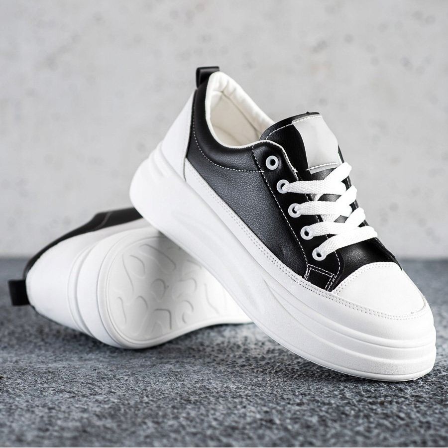 Bemutatjuk a SHELOVET márka divatos platform tornacipőit - ideális választás azoknak a nőknek, akik értékelik a divatos dizájnt és kényelmet. Ezek a stílusos fekete tornacipők, amelyek kiváló minőségű műbőrből készültek, tökéletesen illeszkednek az aktuális trendekhez, ötvözik a sportos stílust az eleganciával.