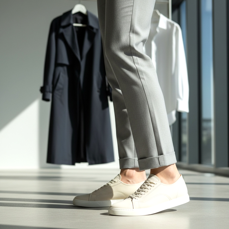 Hogyan kell viselni őket? A karcsú tornacipők jól mutatnak egyenes szárú nadrággal vagy farmerrel, amelynek enyhén felhajtott szára szabaddá teszi a bokát. A tökéletes kombináció a krémszínű tornacipő + világosszürke nadrág + fehér ing + egy elegáns, sötét felső. Megjelenés? Elegáns és modern egyben.