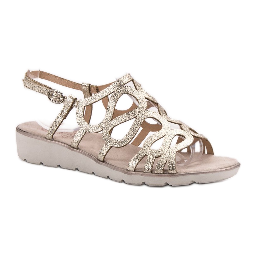 A Kylie szandál tökéletes választás a divatos és kényelmes nyári lábbeliket kereső nők számára. Arany színükkel remekül mutatnak hétköznapi és elegáns stílusban egyaránt. Kiváló minőségű ökológiai bőrből készültek, garantálják a tartósságot és a stílusos megjelenést. Ezenkívül a textil talpbetét biztosítja a láb megfelelő szellőzését, ami kényelmessé teszi a cipőt hosszú viselés esetén is.
