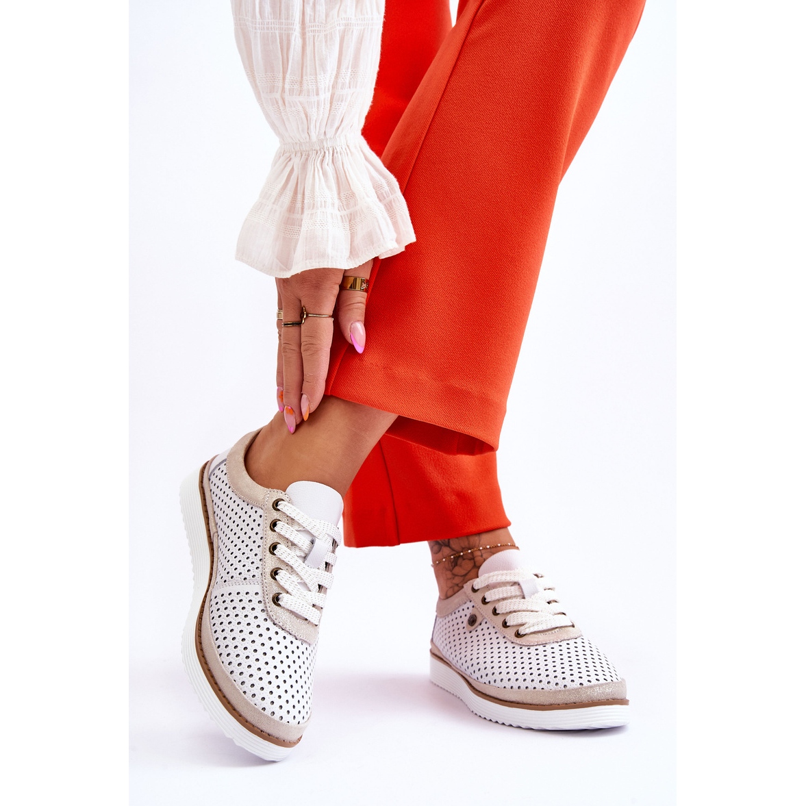 Részletek: S.Barski Divatos bőr áttört sportcipő, fehér és arany Cantare
