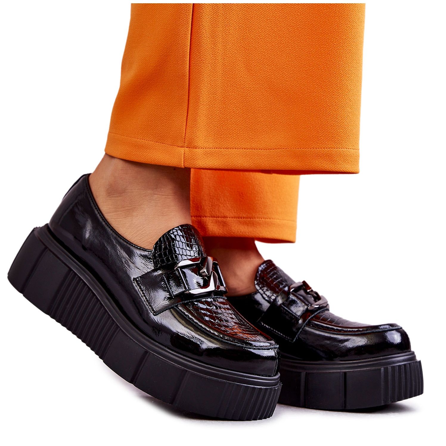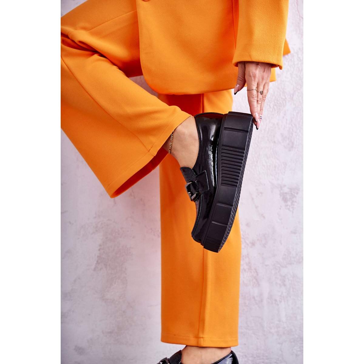 Részletek: PL5 Divatos bőrcipők a Black Marsol platformon fekete