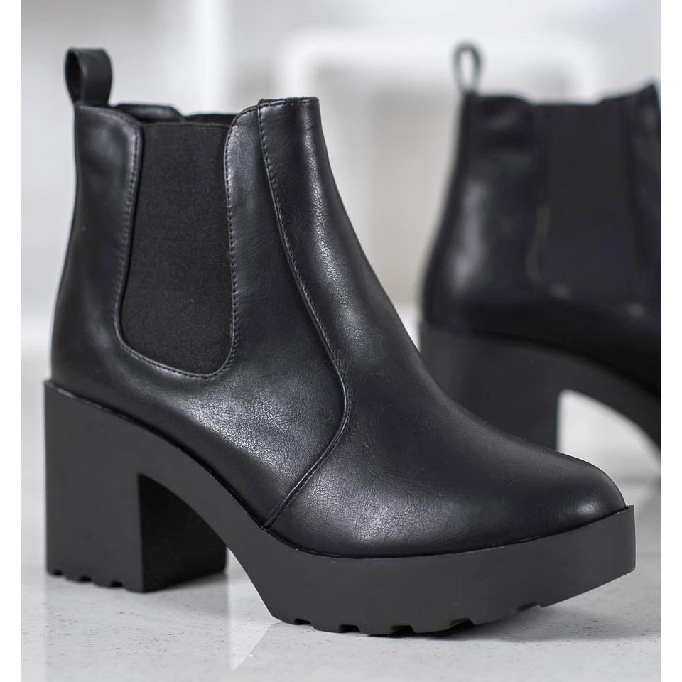 A Chelsea csizmát 10 cm magas tömbsarok jellemzi, amely nemcsak eleganciát ad, hanem stabilitást is biztosít járás közben. A további 3 cm magas platformnak köszönhetően nem fog kényelmetlenséget érezni, még hosszabb viselés esetén sem. A kiváló minőségű műbőrből készült cipők esztétikusak és praktikusak.