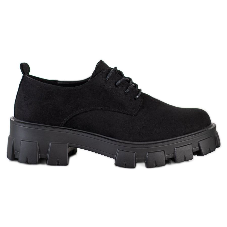 A divatos Seastar platformcipő tökéletes választás azoknak a nőknek, akik értékelik a stílust és a kényelmet. Ökológiai velúrbőrből készült, elegáns fekete színben, így tökéletesen illeszkednek a hétköznapi és divatos megjelenésbe. Klasszikus fűzésük és lekerekített lábujjaik időtlen karaktert kölcsönöznek nekik, az 5 centiméteres platform pedig egész napos viselési kényelmet biztosít.