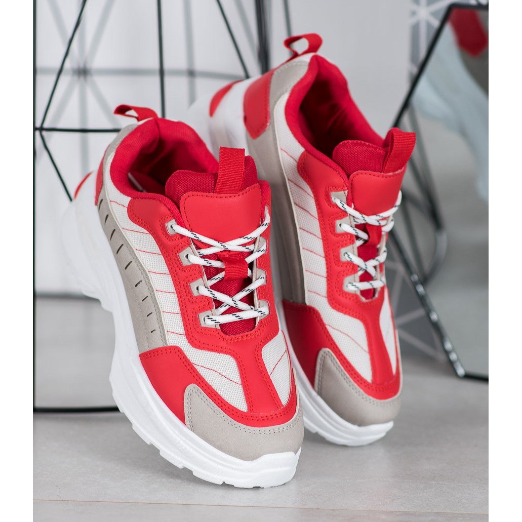 Fedezze fel az egyedi stílust és kényelmet a SHELOVET divatos platformcipők piros színben, szürke és fehér díszítéssel. Ezek a rendkívül dizájnos női cipők tökéletes választás a mindennapi használatra, ötvözik a sportos lelkesedést a divatos részletekkel.