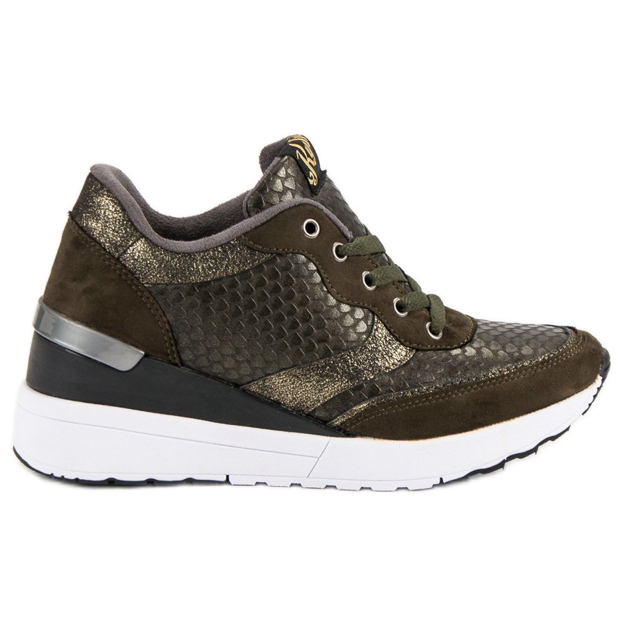 Fedezze fel az egyedi stílust és kényelmet a Kylie divatos cipőivel! A kígyóbőr mintájú zöld platformcipő tökéletes választás azoknak a nőknek, akik szeretnének kitűnni a tömegből. Ökológiai bőr és műanyag kombinációjából készültek, így nemcsak nagyszerű megjelenést, hanem egész napos viselési kényelmet is biztosítanak.