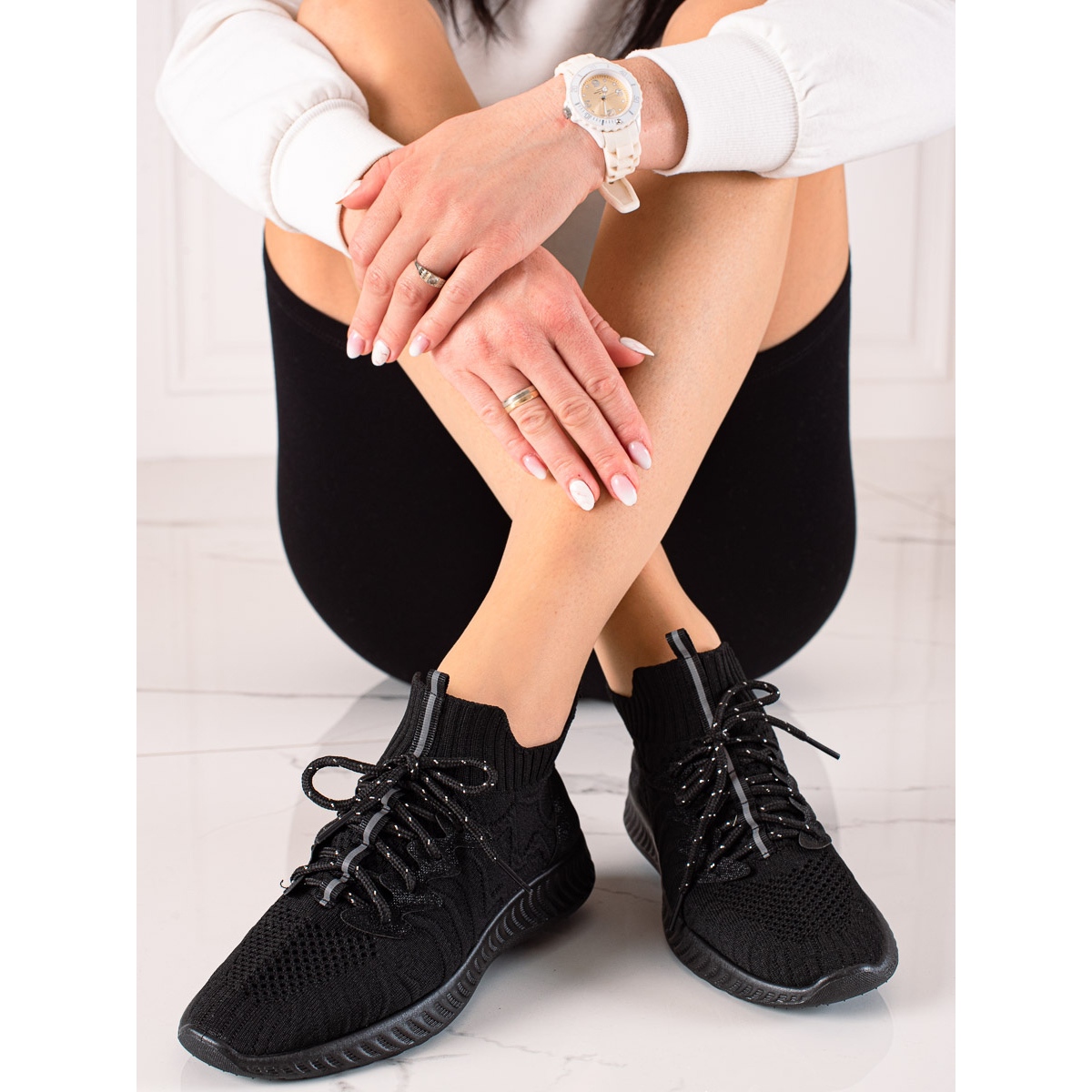 Fedezze fel a rendkívüli kényelmet és stílust a TRENDI divatos fekete tornacipőivel! Ezek a női sportcipők tökéletes választás a mindennapi használatra – városi túrázáshoz és a szabadban való pihenéshez egyaránt tökéletesek.