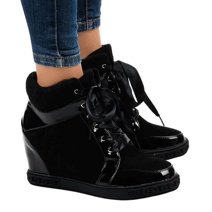 Részletek: Divatos fekete ék cipők KLS-109-3