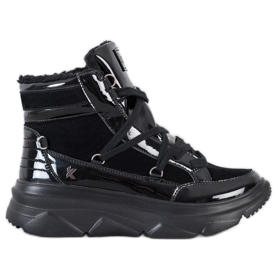 Fedezze fel az egyedi stílust és kényelmet a Kylie fekete lakkcsizmával. Ez a divatos csizma, melynek felső része közvetlenül a boka fölé ér, tökéletes választás az őszi/téli szezonra. Ökológiai bőrből készültek, nem csak esztétikájukkal, hanem funkcionalitásukkal is gyönyörködtetnek.