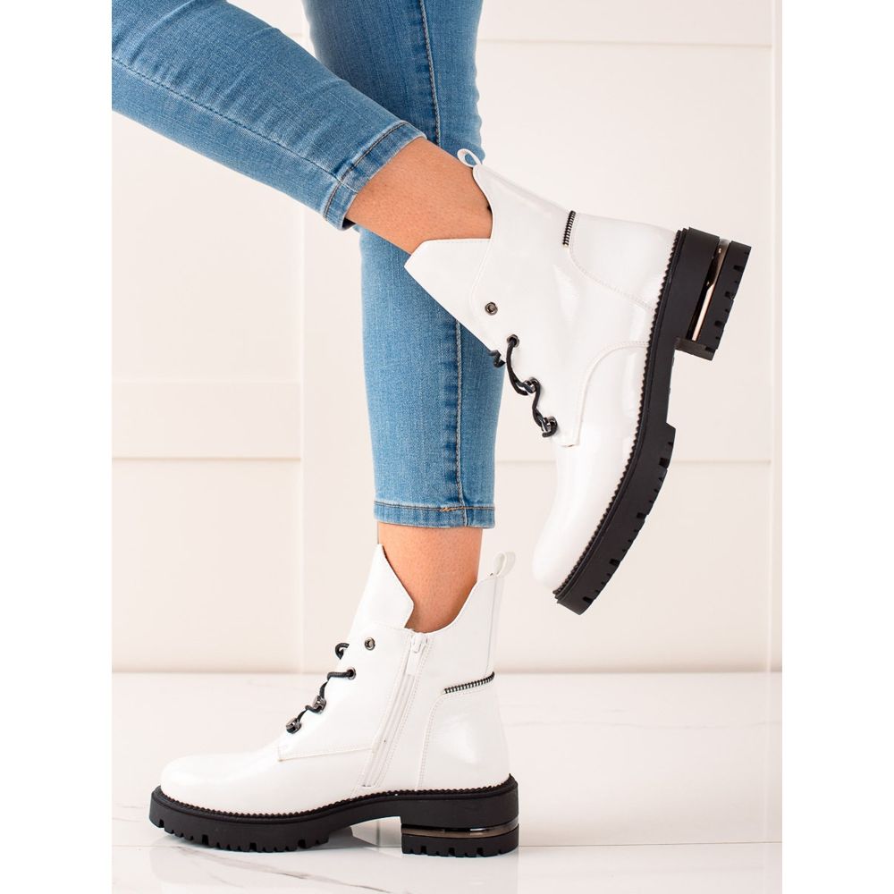 Elegáns fehér színben mutatjuk be a divatos Sergio Leone fűzős munkásokat, amelyek tökéletes kiegészítői lesznek minden őszi-téli stílusnak. Ez a stílusos bokacsizma, amelyet a nőket szem előtt tartva terveztek, ötvözi a lezser stílust a legújabb divatirányzatokkal.