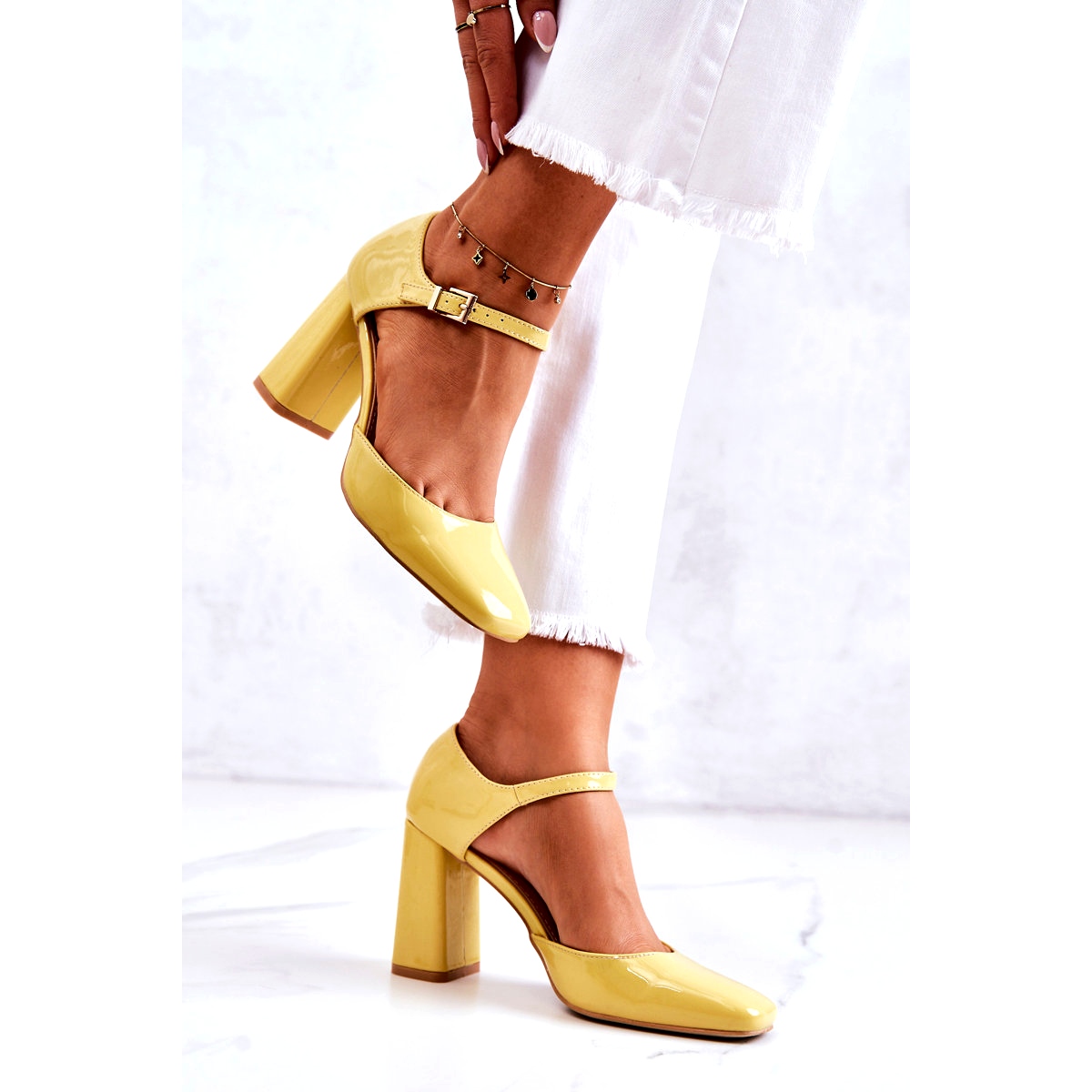A PG1 gyártó divatos Yellow Maori Patent Heel Pumpja tökéletes választás azoknak a nőknek, akik az eleganciát a kényelemmel szeretnék ötvözni. Eco lakkbőrből készült pumpák elegáns megjelenésükkel tűnnek ki, és tökéletesen kiegészítik bármilyen stílust. A stabil tömbsaroknak és a fedett, szögletes orrnak köszönhetően ezek a cipők nem csak stílust, de kényelmet is biztosítanak viselés közben.