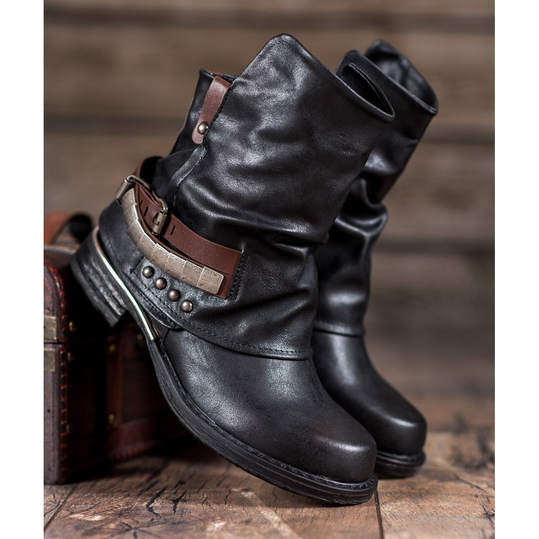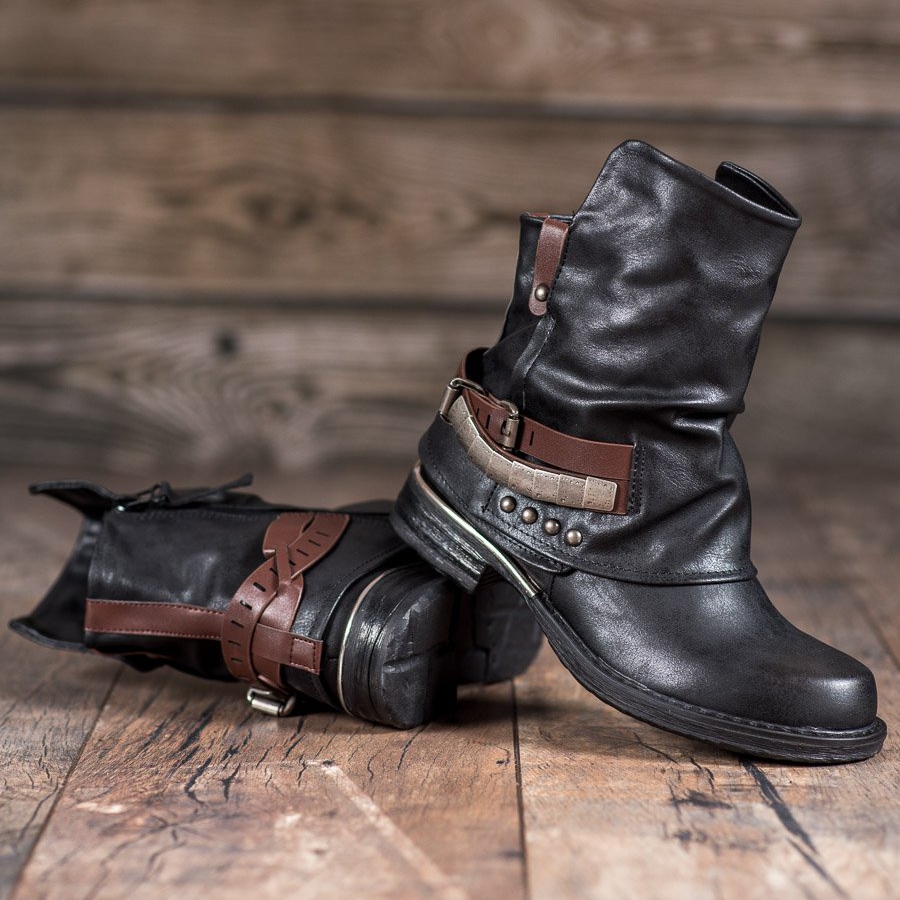 A cipőt magas, 15 cm-es felsőrész jellemzi, amely tökéletesen melegen tartja a lábfejet és a bokát, védve a hideg széltől, különösen motorozáskor. Az azonos anyagból készült kiegészítő rátét további védelmet nyújt, a kerek orr és a teljes 2,5 cm-es sarok pedig a mindennapi kényelmet.