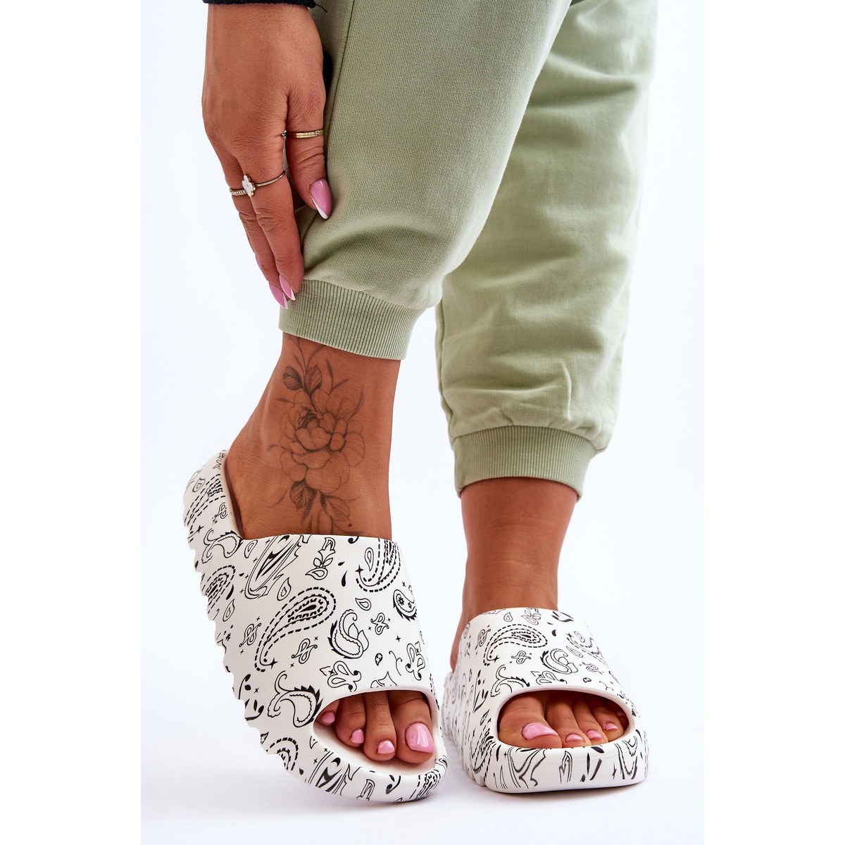 Ennek a lábbelinek a dizájner stílusát a divatos, széles pánt és az eredeti külső nyomat árulja el, amely minden lépéssel eleganciát ad. A minták keveréke kiemeli a papucsok egyedi karakterét, így ideális választás azoknak a nőknek, akik szeretnének kitűnni a tömegből.