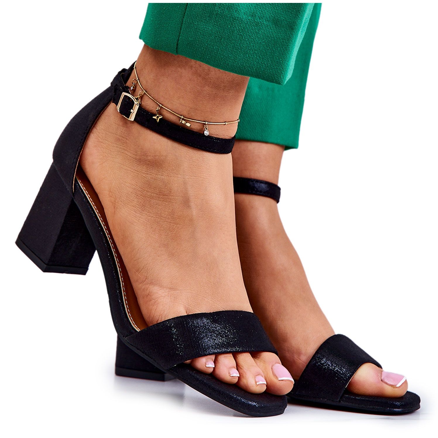 Részletek: Vinceza Divatos női szandál sarkon, fekete Lucida